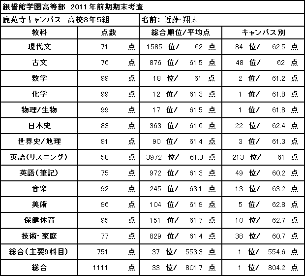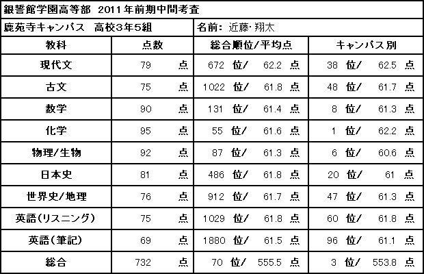 得意・苦手:(1)数学 (2)化学 (3)物理/生物 (苦手)古文